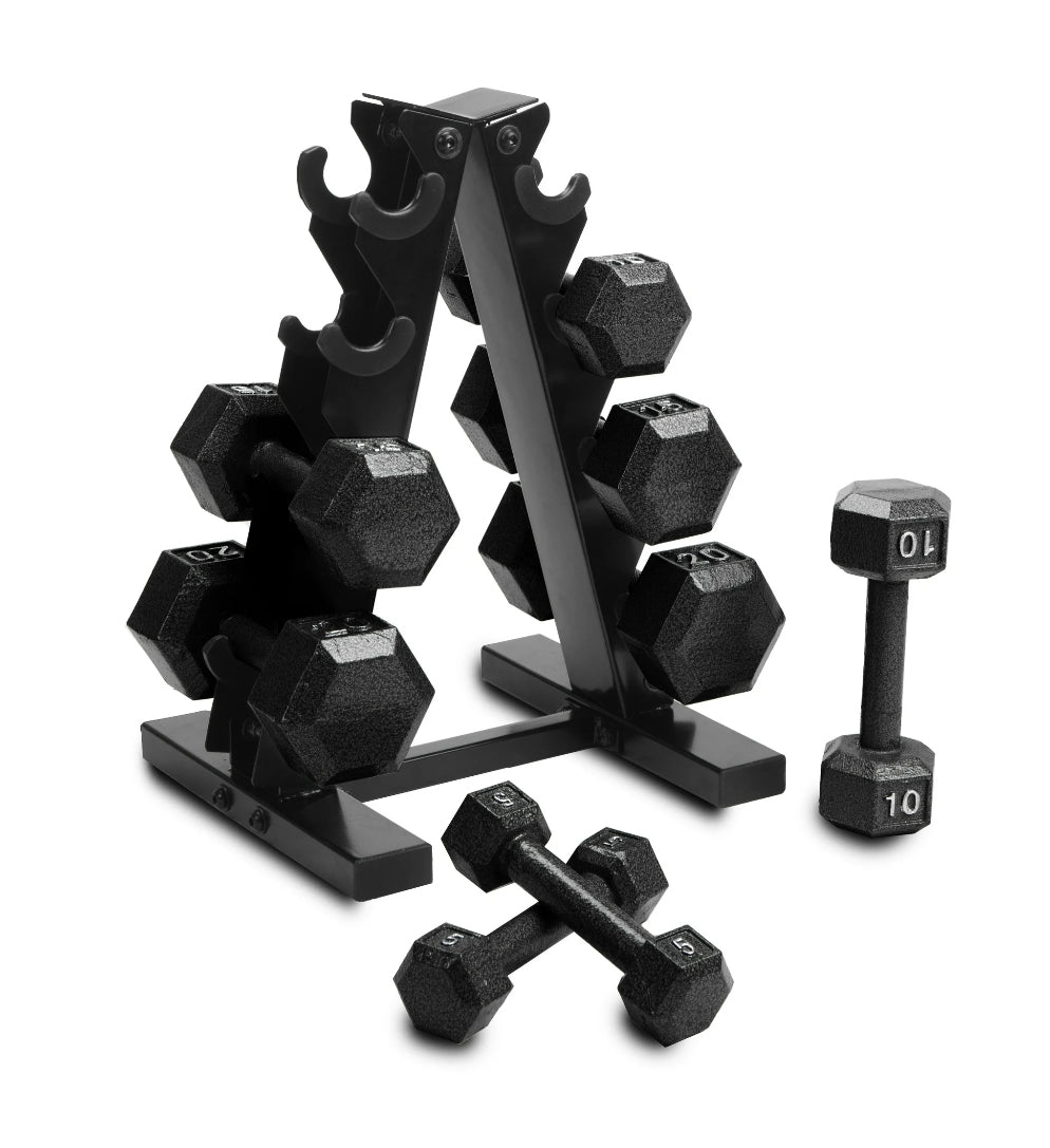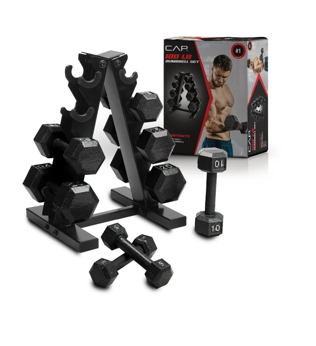 Cap Juego de Pesas con Mancuernas Hexagonales de Hierro Fundido con Barra de 100 lb y Estante, Negro