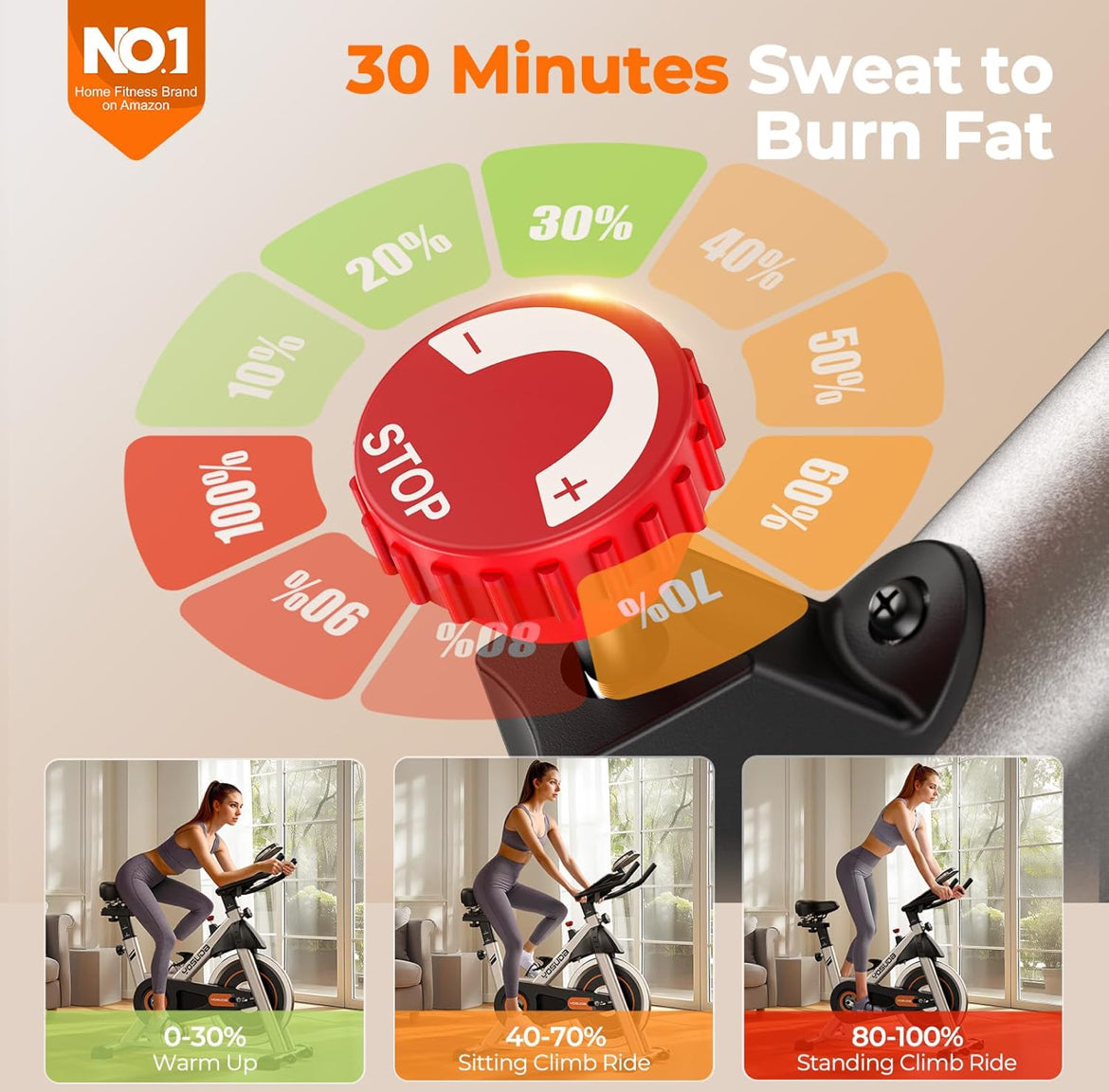 - ✅ Pedaleo suave y silencioso: Volante de inercia de 30 lb y sistema de transmisión por correa para una experiencia estable y silenciosa, ideal para no molestar a vecinos o familiares.
